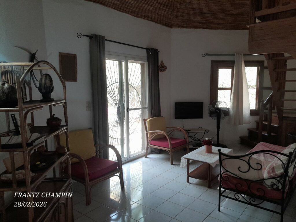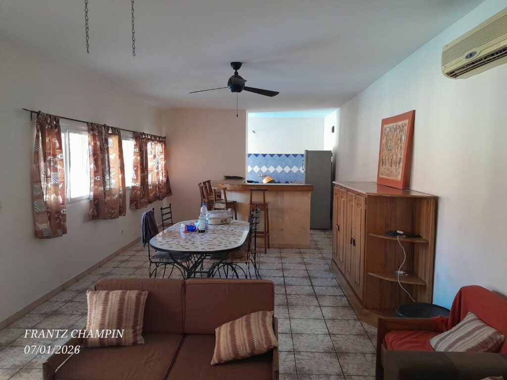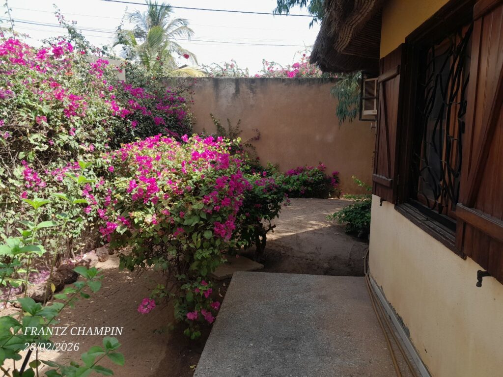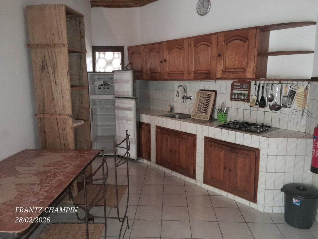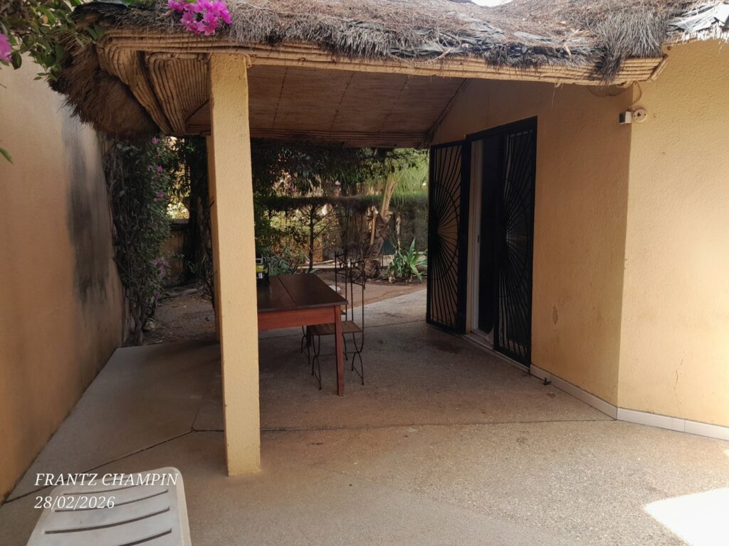 Cuisine ouverte sur salon, salle à manger, buanderie. Magnique jardin arboré d’arbres fruitiers (Manguier, Papaye, citronnier) et d’un local gardien.