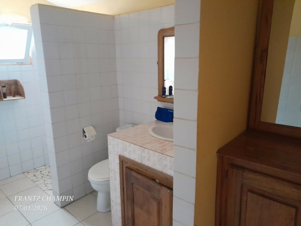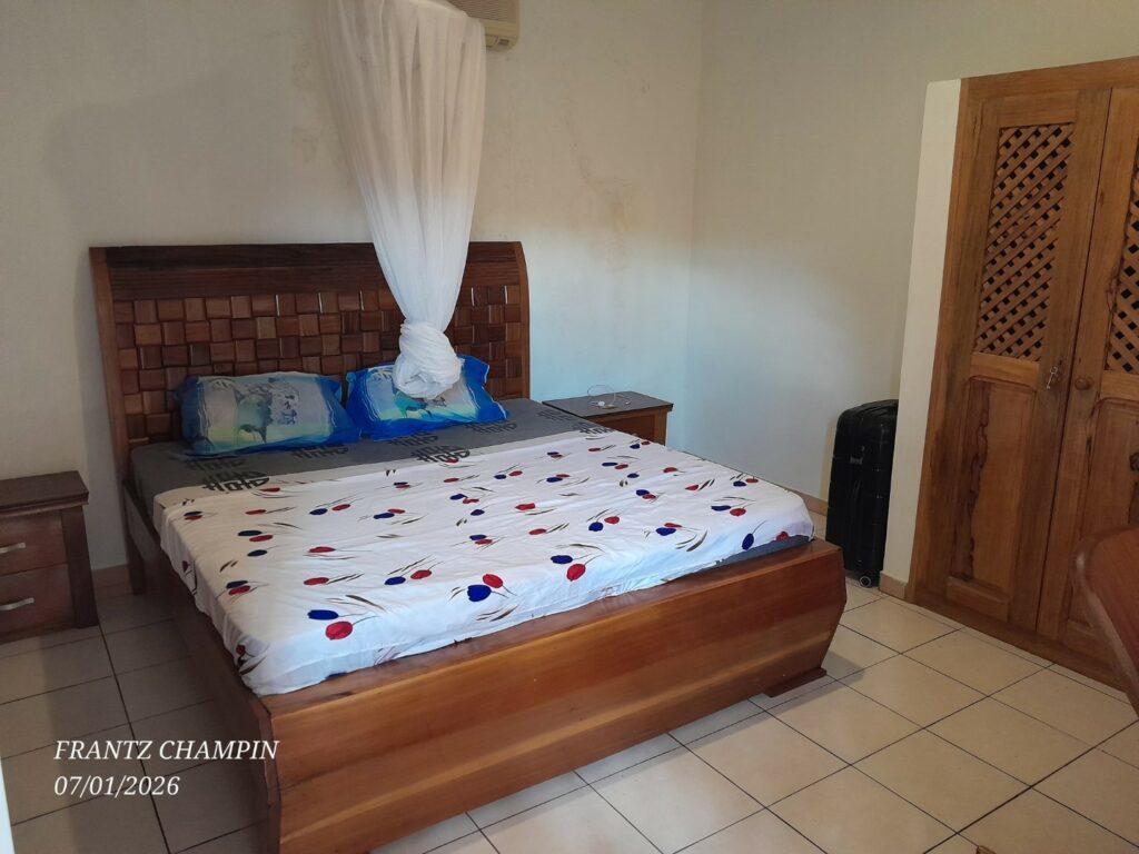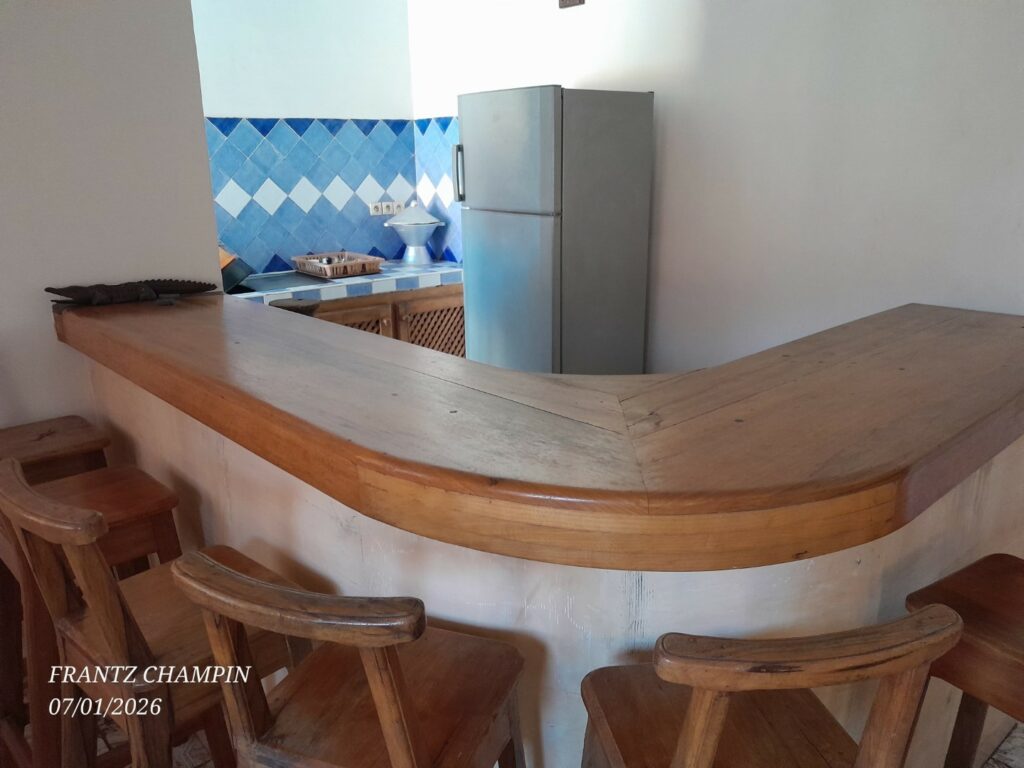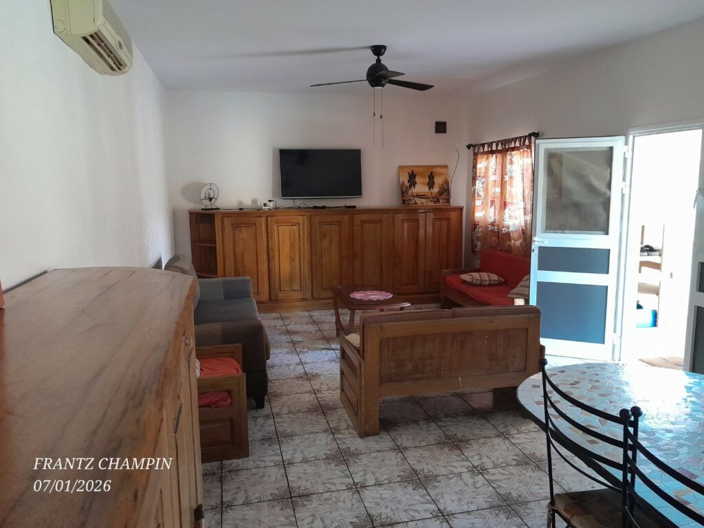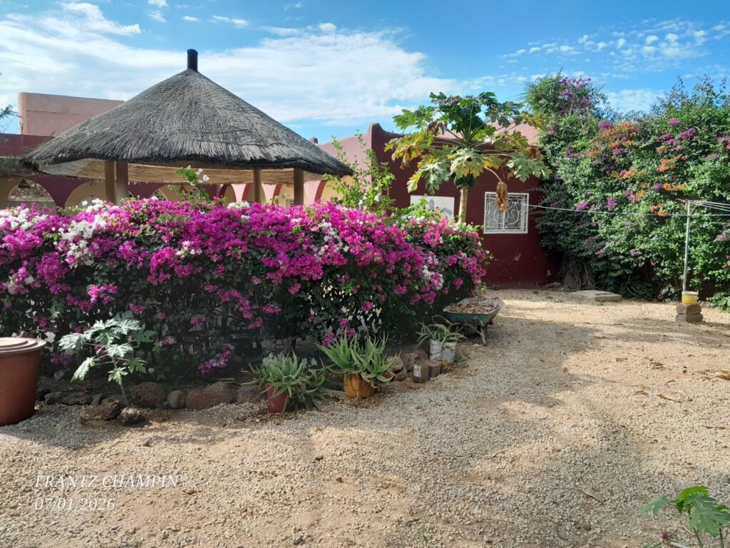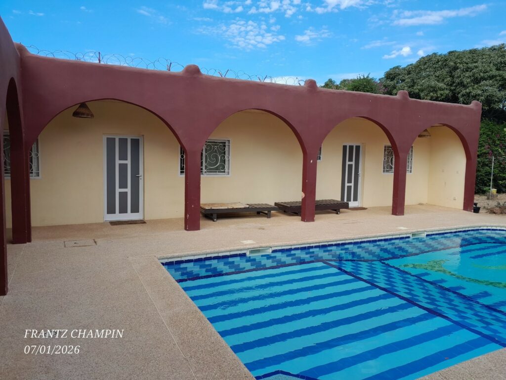 Cuisine ouverte sur salon, salle à manger, buanderie. Magnique jardin arboré d’arbres fruitiers (Manguier, Papaye, citronnier) et d’un local gardien.